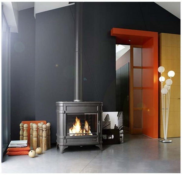 • Design : Finitions en acier et en fonte avec une large vitre qui offre une vue panoramique sur le feu.